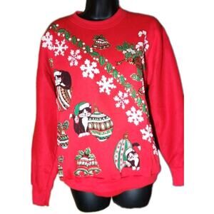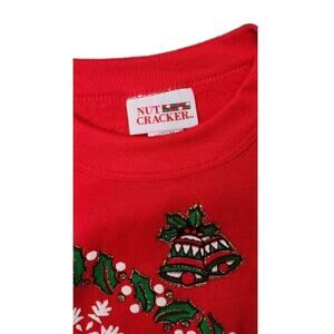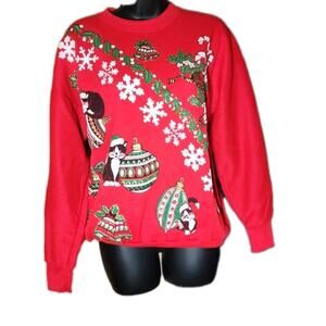 Vintage 90s Women's Med Red Ugly Christmas Sweater Nut Cracker Cat W/ Ornament