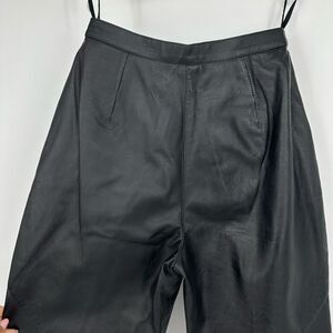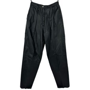 Vintage 90s Womens Pleated Leather Pants Tapered Waist 26” Grunge Minimalist