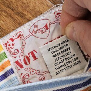 Vintage 90s Womens Size 8 Striped Denim Jean Mom Shorts Rainbow Blue High Waist