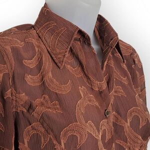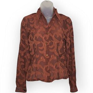 Vintage 90s Women's Textured and Collared Button Down Blouse