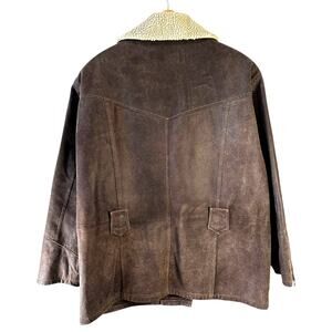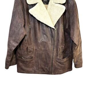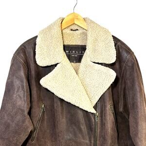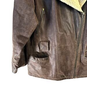 Vintage 90s Women's WINLIT Leather Zip Up Jacket with Sherpa Collar Brown Large
