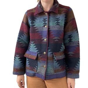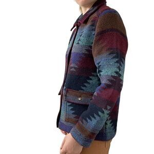 Vintage 90s Womens Wool Blend Aztec Southwestern Bohemian Fleece Jacket Sz L