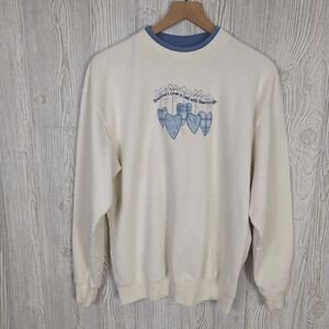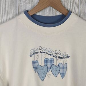 Vintage 90s Women’s XL Cream Blue Grandma’s Love Granny Core Pullover Sweater