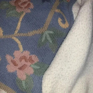 Vintage 90s Womens medium Country Primitive Flower Knit Collared Sweater. Euc