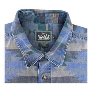 Vintage 90’s Woolrich Blue Aztec Navajo Print Button Down Long Sleeve Shirt L.