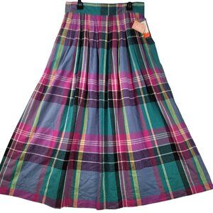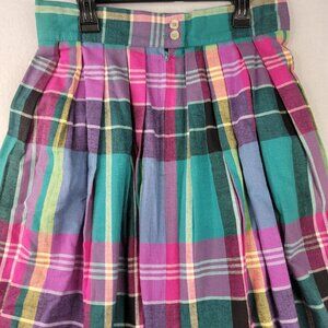 Vintage 90s Woolrich Pleated Plaid Skirt Size 12 Teal Purple Pink Tartan Pattern