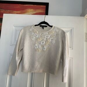 Vintage 90s Work In Progress Floral Sweater White Size Medium Silk Beaded