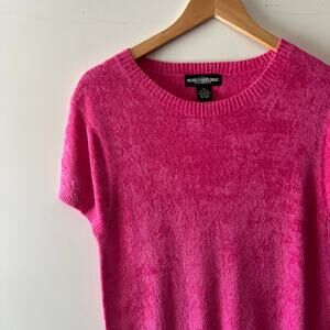 Vintage 90s World Republic Soft Knit Hot Pink Terry Cloth Top Med