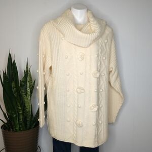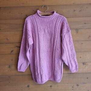 Vintage 90s Worsted Wool Mohair Chunky Knit Turtleneck Sweater