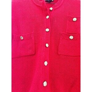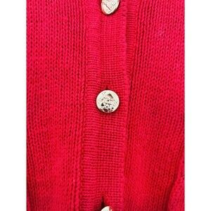 Vintage 90s Worthington Fire Engine Red Gold Button Up Cardigan Petite Sz Med