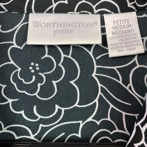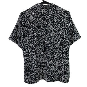 Vintage 90s Worthington Mod Floral Black White Button Up Shirt Womens PM