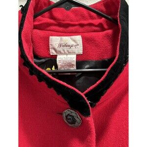Vintage 90s Worthington Red 100% Wool Swing Coat 16 Velvet Trim Grandmacore