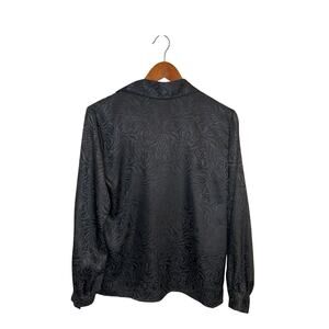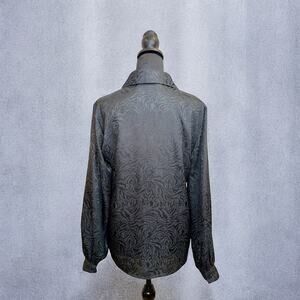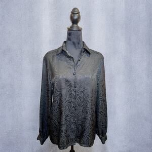 Vintage 90s Worthington Satin Tiger Print Black Button Down Blouse Size 8