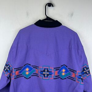 southwestern print, aztec pattern, oversized bomber, retro outerwear, 90s style, native-inspired, purple jacket, vintage outerwear, western fashion, tribal motif