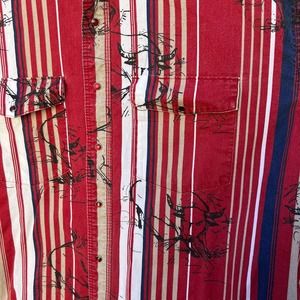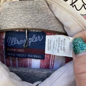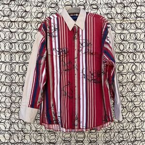 Vintage 90s Wrangler Bull Rodeo Stripe Maroon Tan Long Sleeve Pearl Snap Shirt
