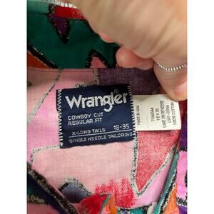 Step back in time with this vibrant vintage 90s Wrangler Cowboy Cut button-down shirt! Featuring a bold Aztec print, this shirt is a true statement piece. Perfect for adding a pop of color and retro flair to any outfit. Embrace the nostalgia and stand out from the crowd with this unique find!