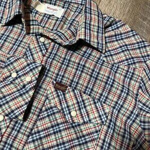 Vintage 90s Wrangler Plaid Pearl Snap Button Long Sleeve Shirt Mens Large USA