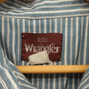 Vintage 90s Wrangler Striped Green White Pearl Snap Mens Large 16-16.5 Bowling