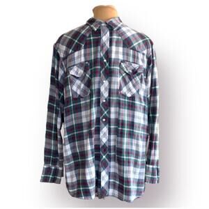 Vintage 90s Wrangler Western Pearl Snap Flannel Shirt 2XLT Tall Plaid Burgundy