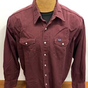 Vintage Wrangler X-Long Tails Burgundy Pearl Snap Western Shirt Preshrunk Cotton - made in USA - Style No. MWX271R