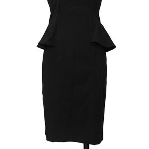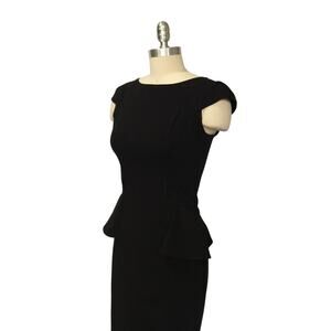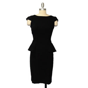 Vintage 90s XOXO Midi Dress Size S 3/4 Black Peplum Cap Sleeve Office Siren