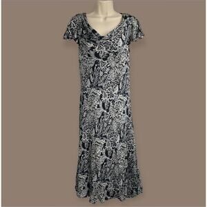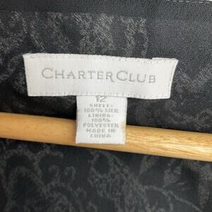 This Vintage 90s Y2K 100% Silk Floral Paisley Dress by Charter Club is a large-sized A-line dress perfect for casual occasions. The dress features a beautiful multi-color floral paisley design, an asymmetrical hem, and a bohemian look typical of the 1990s era. Made from luxurious 100% silk material, this dress embodies the relaxed and free-spirited fashion of the time. The size L fits regular-sized women, making it a beautiful and comfortable option for those looking for a unique and stylish piece of vintage clothing.