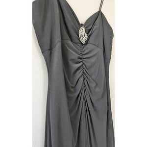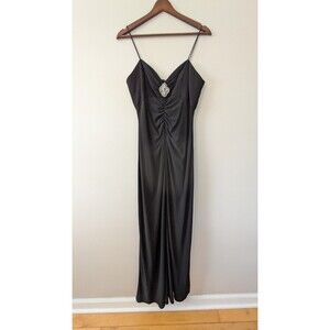 Vintage 90s Y2K Alex Evenings Maxi Dress 10 Babydoll Black Ruched Embellished