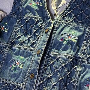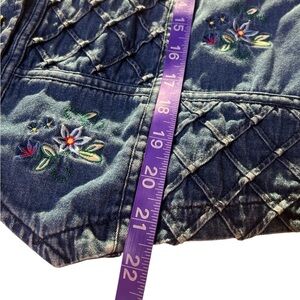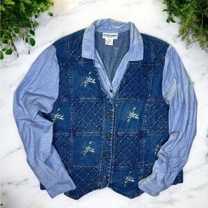 Vintage, 90s Y2K • Alfred Dunner Petite Easter Spring Blue Jean Embroidered floral print Attached Blouse/Vest combo shacket