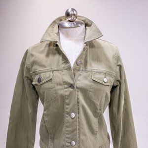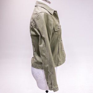 Vintage 90s Y2K Anthropologie S Cotton Jean Jacket Light Green Tan Grey
