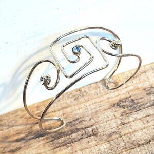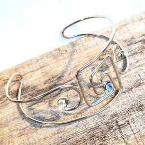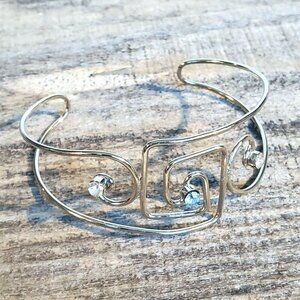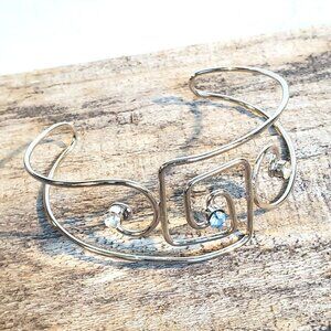 Vintage 90s Y2K Artsy Rhinestone Detail Silver Cuff Bracelet