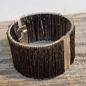 Vintage 90s Y2K Beaded Wire Wrap Detail Cuff Bracelet