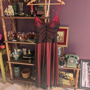 Vintage 90s Y2K Betsey Johnson Gothic Black Red Dress Size 6 Small Pleated