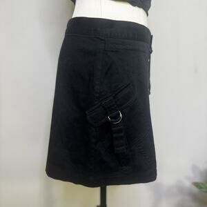 Vintage 90s Y2K Black Cotton Cargo Mini Skirt Ruched Snap Up Grunge Indie Goth 3