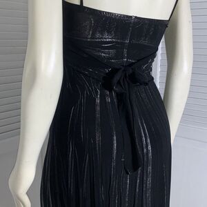 Deb milk maid black metallic pullover stretchy spandex mini dress. Spaghetti straps, tie waist, pleated, lightly padded bust. Excellent condition. Women’s size small.