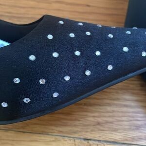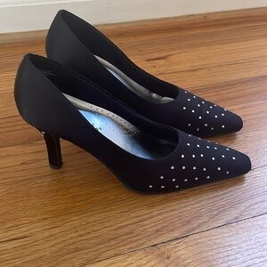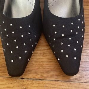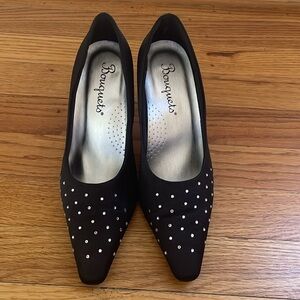 Vintage 90s Y2K Black Heel Bouquets Rhinestone Stud Heel Top Squared Toe Shoe 7