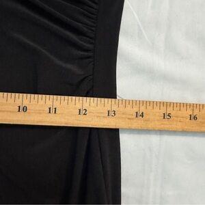 black slip dress, ruffled midi, 3/4 sleeves, polyester spandex blend, late 90s, early 2000s, goth-inspired, y2k fashion, stretchy comfort, elegant evening