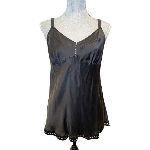 Vintage 90’s Y2K Black Silk Rhinestone Tank Top Shell Anne Klein