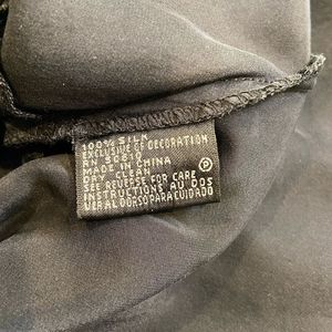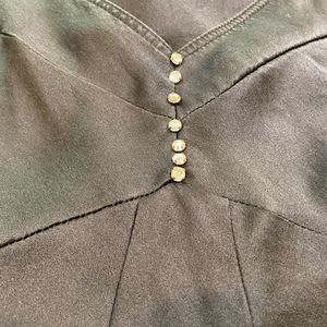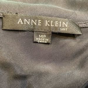 Black silk (100%) with rhinestone down chest and around entire bottom. Defined bust. Adjustable straps. No tears, rips or stains. Some fading on silk but very minor. Anne Klein Suit 14 petite. Bust measuring approximately 18 inches across, flat (36 Inches). Length 25 1/2 inches shoulder to hem. Good used condition.