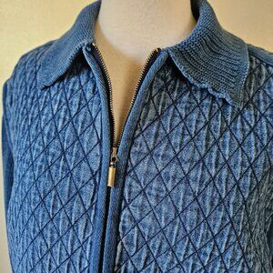Vintage 90s Y2K Blast Indigo Blue Quilted Body Knit Sleeves Zip Jacket Sweater L