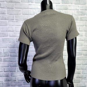 Vintage 90s Y2K Brazeau Tricot Size 1/S Grey Ribbed Short Sleeve Fitted Tee