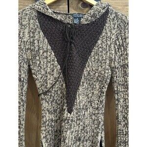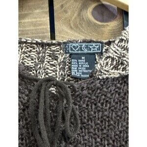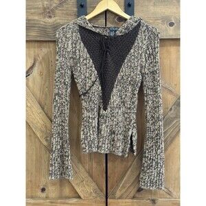 Vintage Sweater Brown Knit Tie Womens Sz M Bell Sleeves Pullover Hooded 90s Y2K