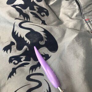 Vintage 90's Y2K CC Counter Culture Boardshorts, Tie Front, Hook & Loop Fly,Lightweight, Cargo Pocket. Novelty Flocked Dragon PrintTagged: 34 ( Runs Small), Rave Skater Surfer Beach