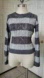 Light gray and charcoal gray stripes. Crew neck, long sleeve. Textured knit pattern (alternating cableknit and knit crochet-like areas). Excellent condition.