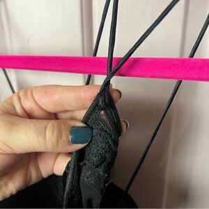 Beautiful Vintage piece EUC. Sweatheart neckline with embroidered detail and small mesh keyhole. Double spaghetti strap with back zip closure. Has lite stretch to fabric body hugging through hips.