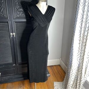 Vintage 90s Y2K Cache Slinky Travel Knit Gown Black Midi Gown Prom Wedding 6