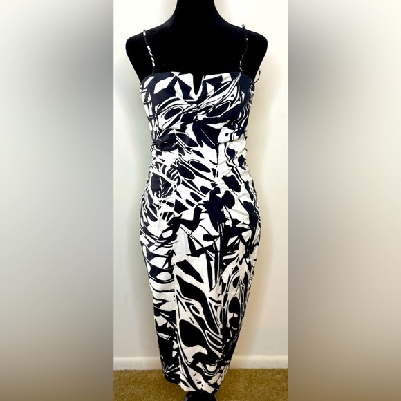 Vintage 90s Y2K Cache black and white bodycon midi dress chic sexy size 8 EUC