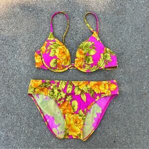 Vintage 90s Y2K Carabella Floral yellow fuchsia underwire bra bikini set