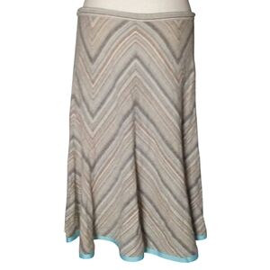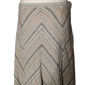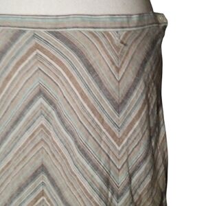 Vintage 90's Y2K Chevron Print Linen Blend Ribbon Trim Full A line Skirt Size 10
