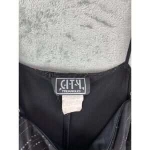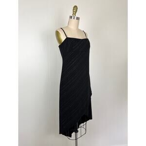 Vintage 90s Y2K City Triangles Stretchy Black Midi Dress Large Pointy Tulip Hem Goth Witch Whimsigoth Cyber Witchy Grunge Fairy Metallic Diagonal Stripe