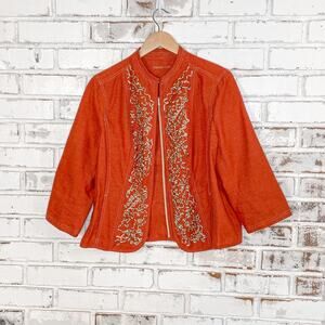 Vintage 90s Y2K Coldwater Creek Rust Linen Blend Ribbon Detail Jacket